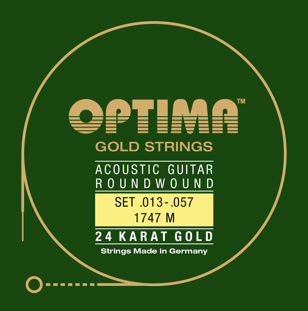 OPTIMA 24K GOLD STRINGS Developed and handmade in Germany from the finest materials for the highest tonal demand, these are probably the most precious strings in the world. This series reflects our 100 years tradition of string making. The result is a string of unmatched premium quality, coated with real 24 Karat Gold, which makes them insensitive to tarnishing or corrosion, and suitable for people allergic to nickel. They carry a wider spectrum of overtones and dynamic range, and their durability, compared-to standard strings is up to three times higher. OPTIMA 24K GOLD STRINGS are characterized by the brilliant SOUND OF GOLD, very much loved by Frank Zappa and Brian May.