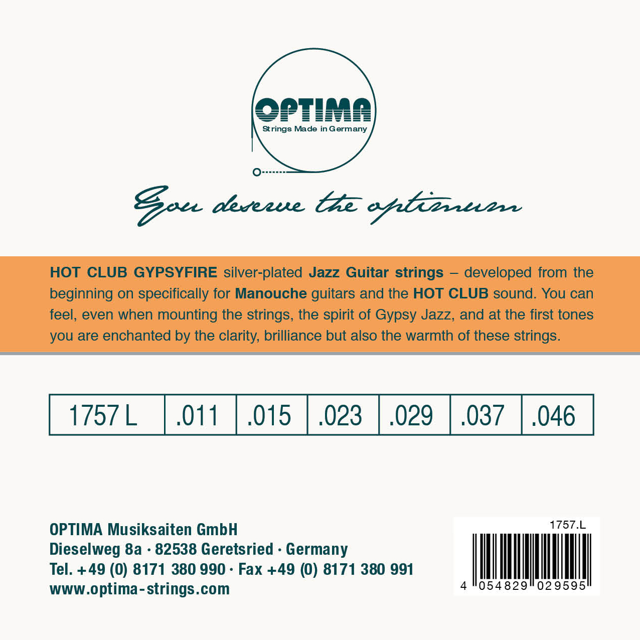 OPTIMA HOT CLUB GYPSYFIRE ? a name with a statement ? Strings that have been developed from the beginning on specifically for Manouche guitars and the HOT CLUB sound. You can feel, even when mounting the strings, the spirit of gypsy jazz, and at the first tones, you are enchanted by the clarity, brilliance but also he warmth of these strings. Made with ball end. Silver roundwound, with loop end.