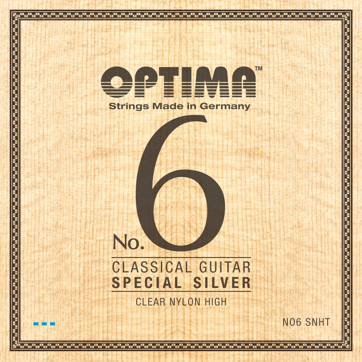 OPTIMA No.6 ? Every concert guitarist should remember the name of these strings, because they bring forth an entirely new dimension. We have left behind old patterns and materials and have merely reinvented the classical guitar string. The bass strings are made with a wholly new core material, wound with a 24 Karat Gold plated wire, resulting in a string with an extraordinary fast response, a powerful sustainable tone very rich in overtones, where the sound spectrum remains perfectly balanced.