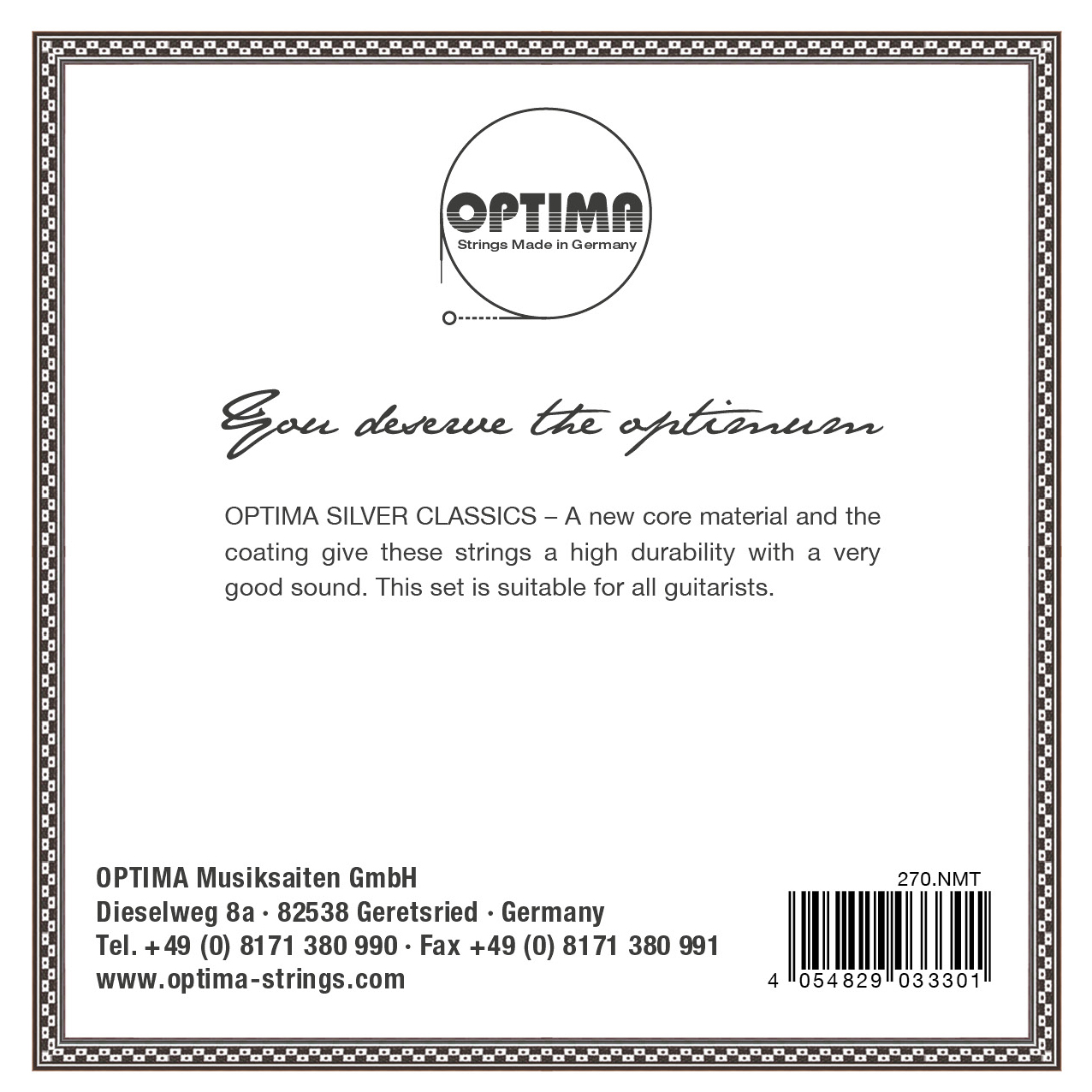 OPTIMA SILVER CLASSICS - Our new concept for the development of the No.6 series has been the basis for the further development of this popular string series. A special Silver coating gives to these strings high durability. An excellent set of strings which is suitable for any guitarist.