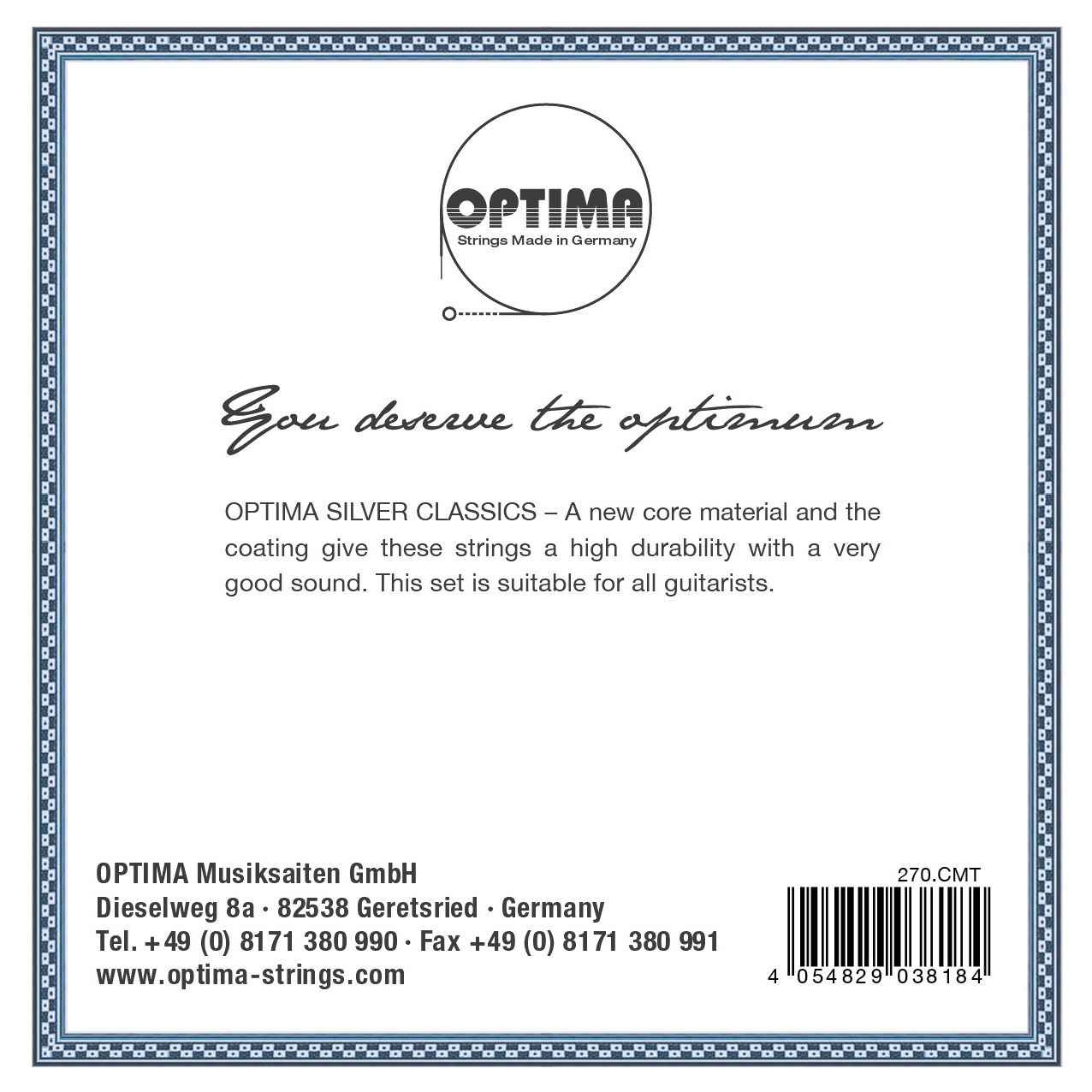 OPTIMA SILVER CLASSICS - Our new concept for the development of the No.6 series has been the basis for the further development of this popular string series. A special Silver coating gives to these strings high durability. An excellent set of strings which is suitable for any guitarist.