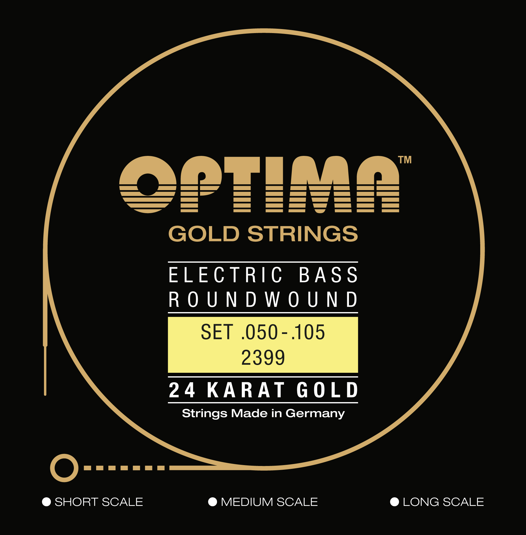 OPTIMA 24K GOLD STRINGS Developed and handmade in Germany from the finest materials for the highest tonal demand, these are probably the most precious strings in the world. This series reflects our 100 years tradition of string making. The result is a string of unmatched premium quality, coated with real 24 Karat Gold, which makes them insensitive to tarnishing or corrosion, and suitable for people allergic to nickel. They carry a wider spectrum of overtones and dynamic range, and their durability, compared-to standard strings is up to three times higher.