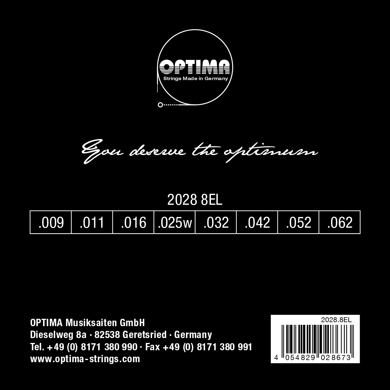 .010 .013 .017 .026w .035 .046 .056 - 24 Karat Gold Plated - E1, H2 und G3 bestehen aus einem hochwertigen, vernickelten Stahldraht und werden zusätzlich mit echtem Gold beschichtet. D4, A5 und E6 - der Kern dieser Saiten ist verzinnter Sechskantstahl, mit vergoldetem Umspinndraht umwickelt. OPTIMA GOLD STRINGS - Die wohl edelste Saite der Welt. Entwickelt und handgefertigt in Deutschland, aus den besten Materialien und für höchste klangliche Ansprüche konzipiert. In dieser Serie spiegelt sich unsere 75-jährige Tradition in der Saitenherstellung wider. Das Ergebnis ist eine Saite in Premiumqualität, die ihresgleichen sucht. Alle Saiten sind mit echtem 24 Karat Gold beschichtet und daher völlig unempfindlich gegen Anlaufen oder Korrosion. Ihre Haltbarkeit liegt bis zu dreimal höher als bei normalen Saiten und sind für Nickelallergiker geeignet. 100% Made in Germany.