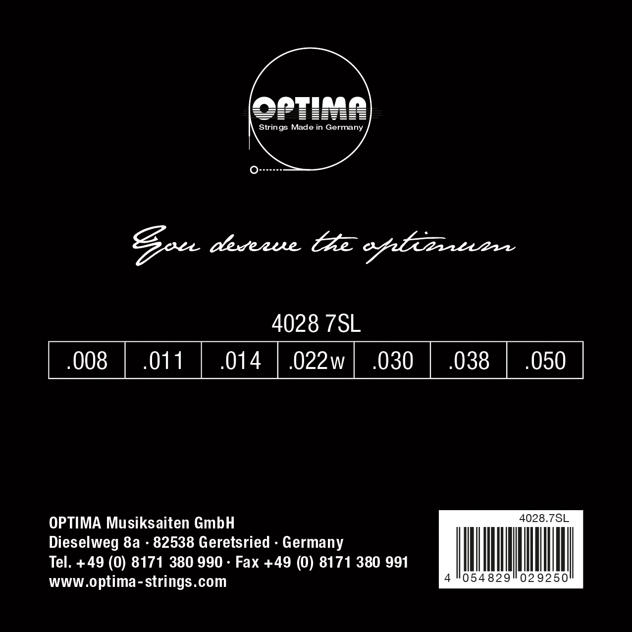 .008 .011 .014 .022w .030 .038 .050 Nickel Plated Steel wound Electric Guitar Strings in roundwound design. The Optima 4028 Reference was developed to provide reliable and consistent playability. The premium NPS alloy ensures even response and stable intonation across the entire set. Developed for musicians who want to rely on their instrument. Developed and produced in Germany.