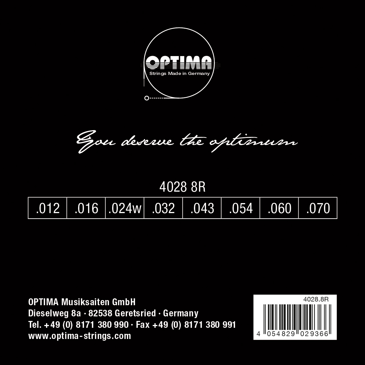 .012 .016 .024w .032 .043 .054 .060 .070 Nickel Plated Steel wound Electric Guitar Strings in roundwound design. The Optima 4028 Reference was developed to provide reliable and consistent playability. The premium NPS alloy ensures even response and stable intonation across the entire set. Developed for musicians who want to rely on their instrument. Developed and produced in Germany.