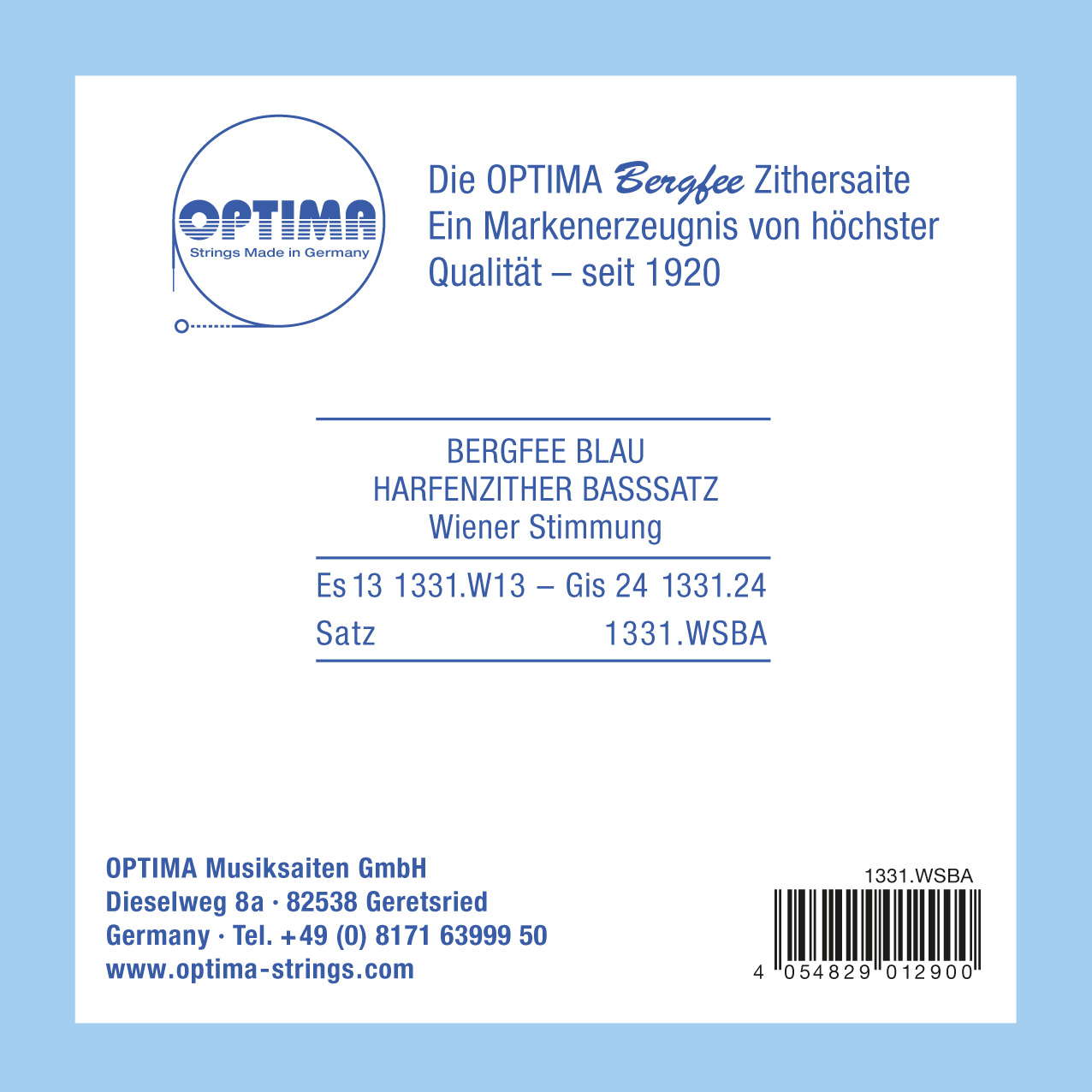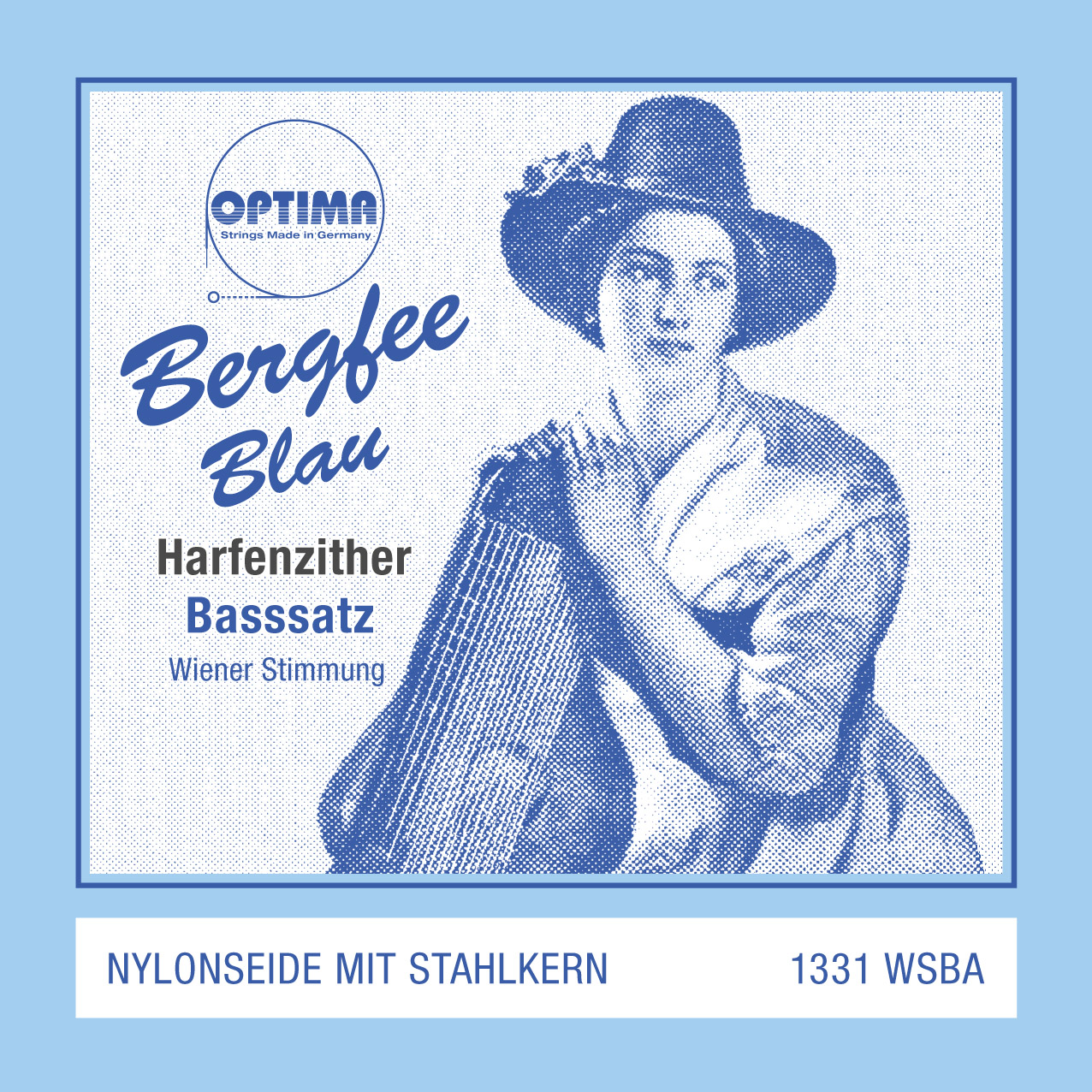 Harfenzither BERGFEE Nylon Blau, Wiener St., Basssatz