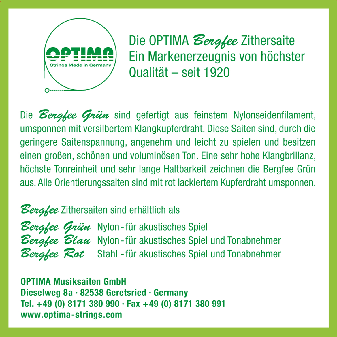 Psalterzither BERGFEE Nylon Grün, Begleitsatz